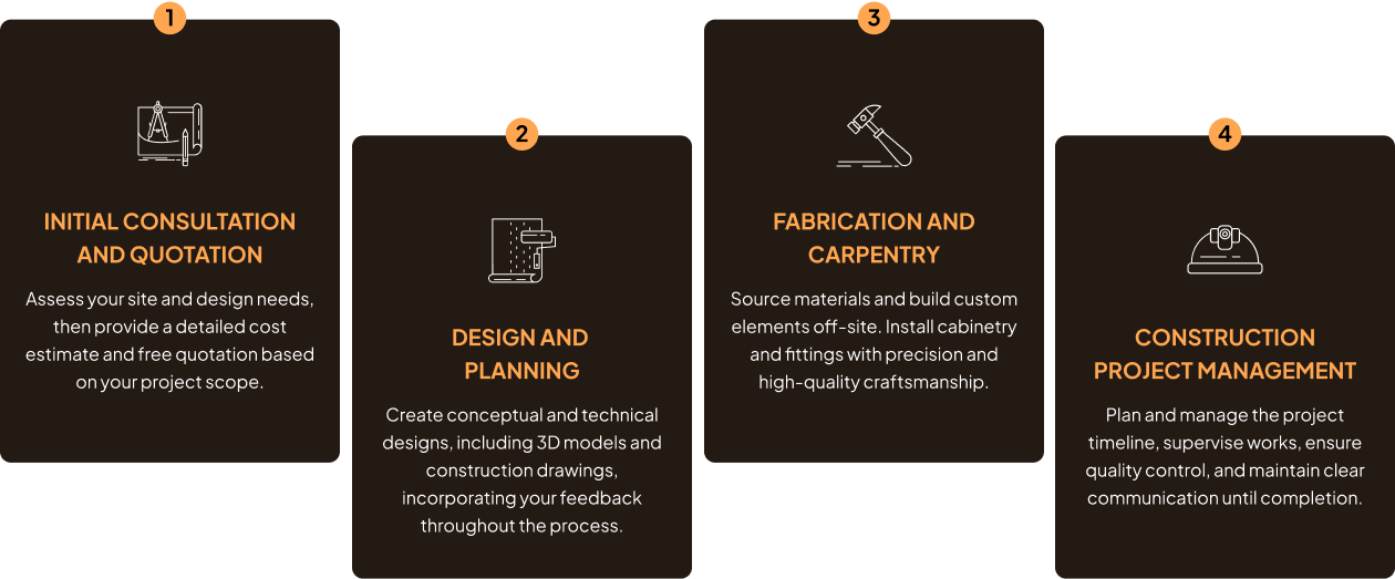 We are a one-stop provider for all your interior design and build requirements, with solutions for commercial and corporate properties, home areas, and shops.